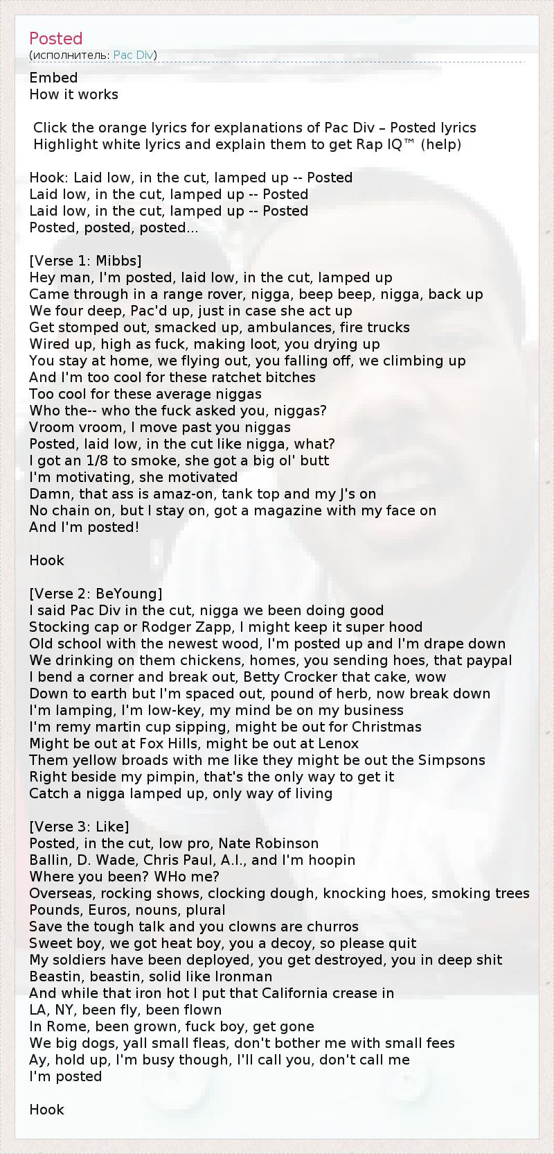 Click the orange lyrics for explanations of Pac Div – Posted lyrics
