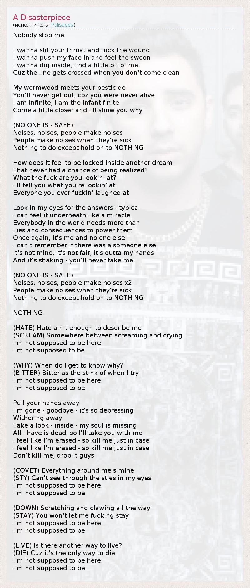 А как ты думаешь, о чем песня "A Disasterpiece" ?