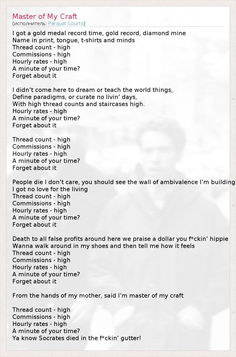 А как ты думаешь, о чем песня "Master of My Craft" ?
