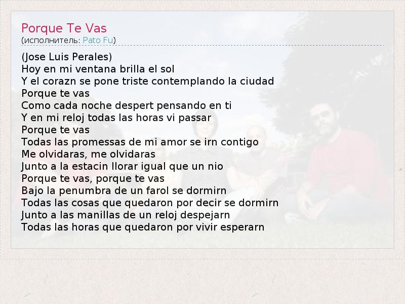 А как ты думаешь, о чем песня "Porque Te Vas" ?