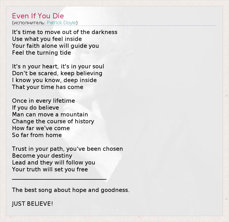 А как ты думаешь, о чем песня "Even If You Die" ?
