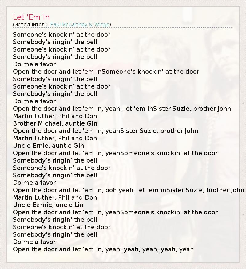 А как ты думаешь, о чем песня "Let 'Em In" ?