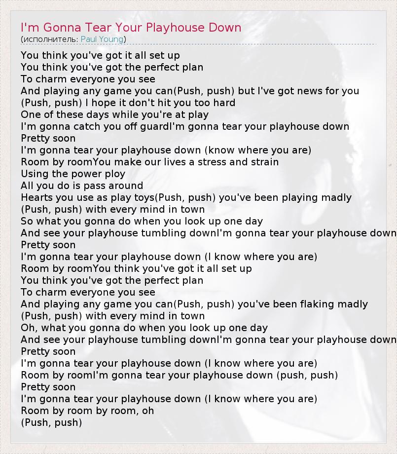 ГлавнаяИсполнителиPaul YoungI'm Gonna Tear Your Playhouse Down