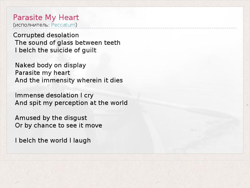 А как ты думаешь, о чем песня "Parasite My Heart" ?