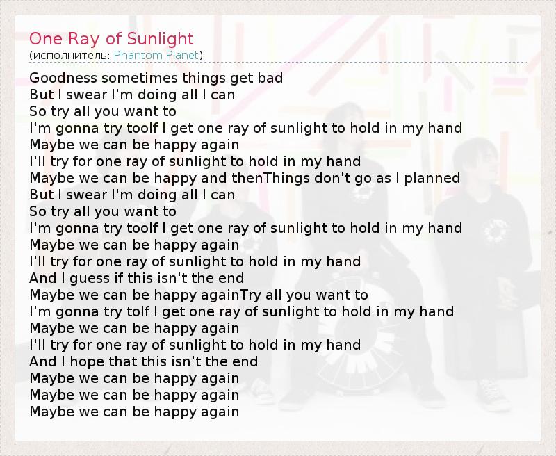 А как ты думаешь, о чем песня "One Ray of Sunlight" ?
