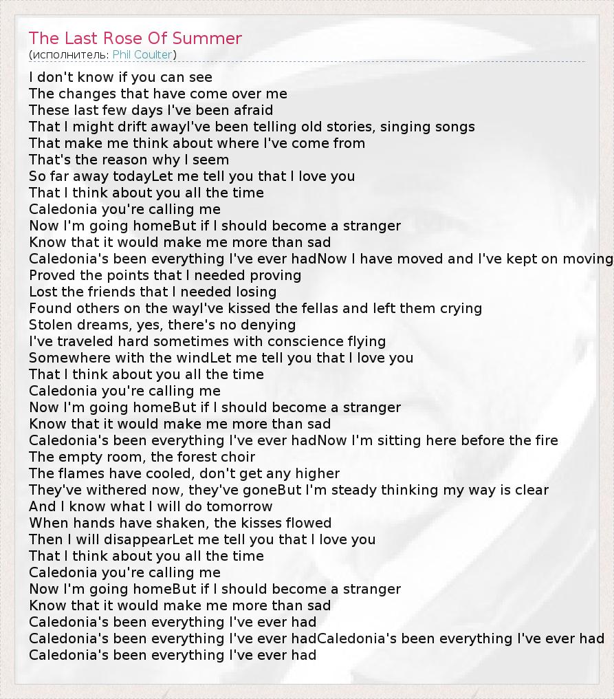 А как ты думаешь, о чем песня "The Last Rose Of Summer" ?