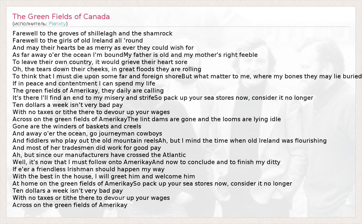 ГлавнаяИсполнителиPlanxtyThe Green Fields of Canada