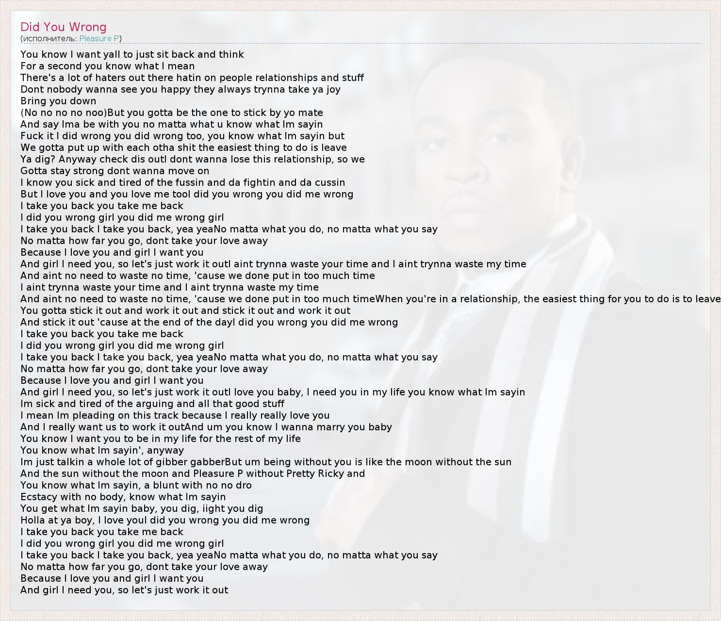 А как ты думаешь, о чем песня "Did You Wrong" ?