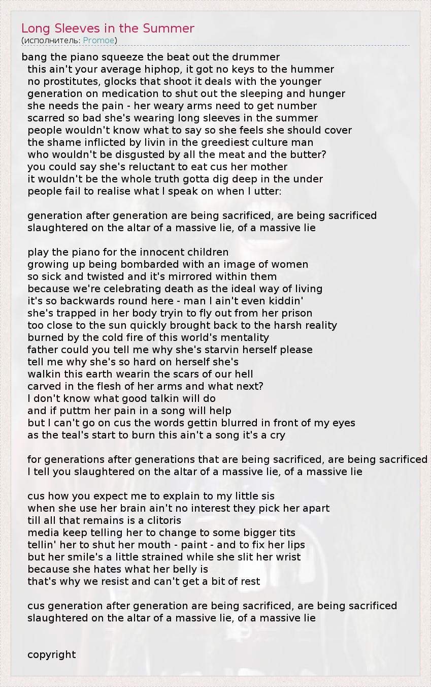 ГлавнаяИсполнителиPromoeLong Sleeves in the Summer