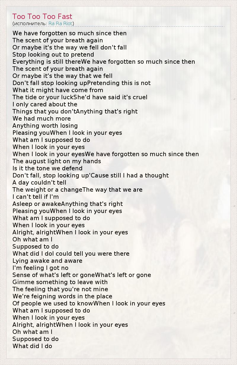 А как ты думаешь, о чем песня "Too Too Too Fast" ?