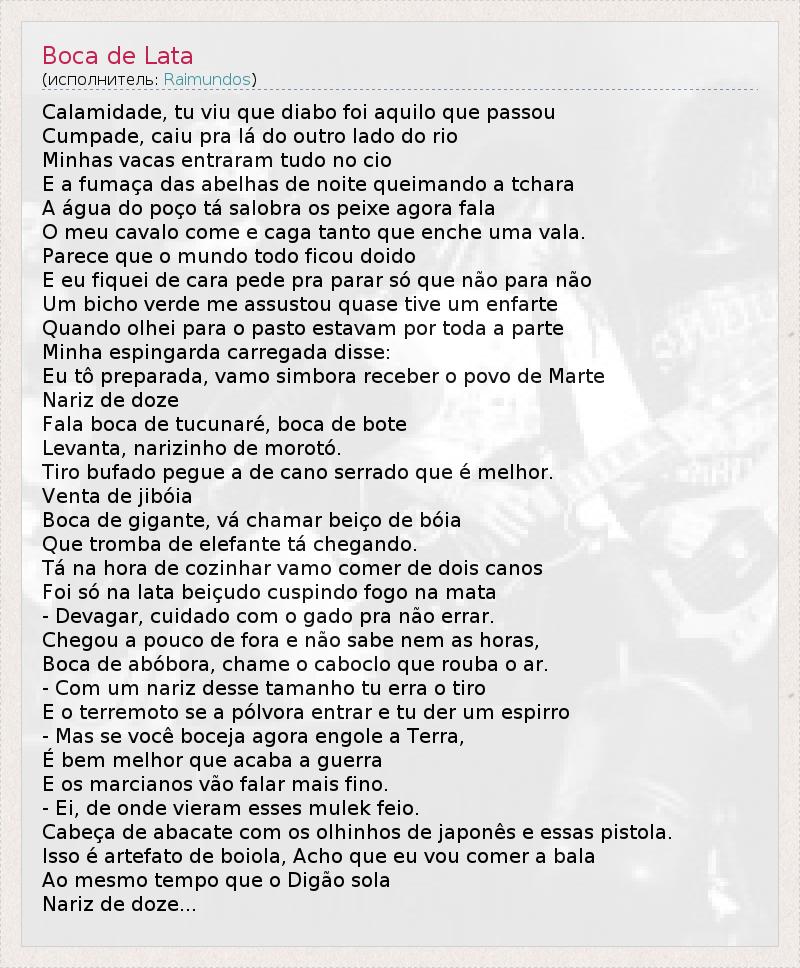 А как ты думаешь, о чем песня "Boca de Lata" ?