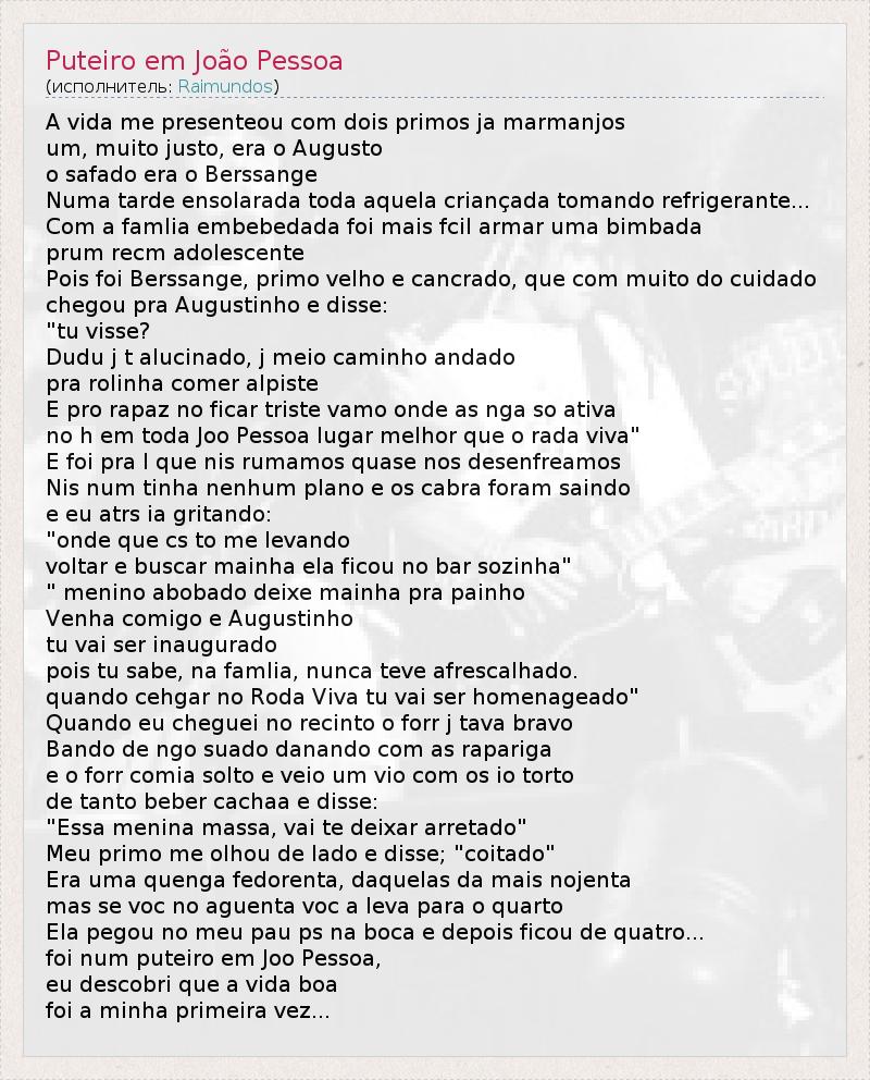 А как ты думаешь, о чем песня "Puteiro em João Pessoa" ?