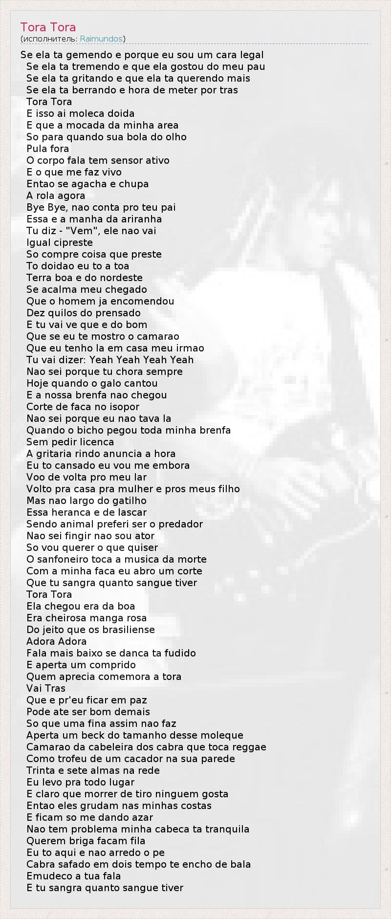 А как ты думаешь, о чем песня "Tora Tora" ?