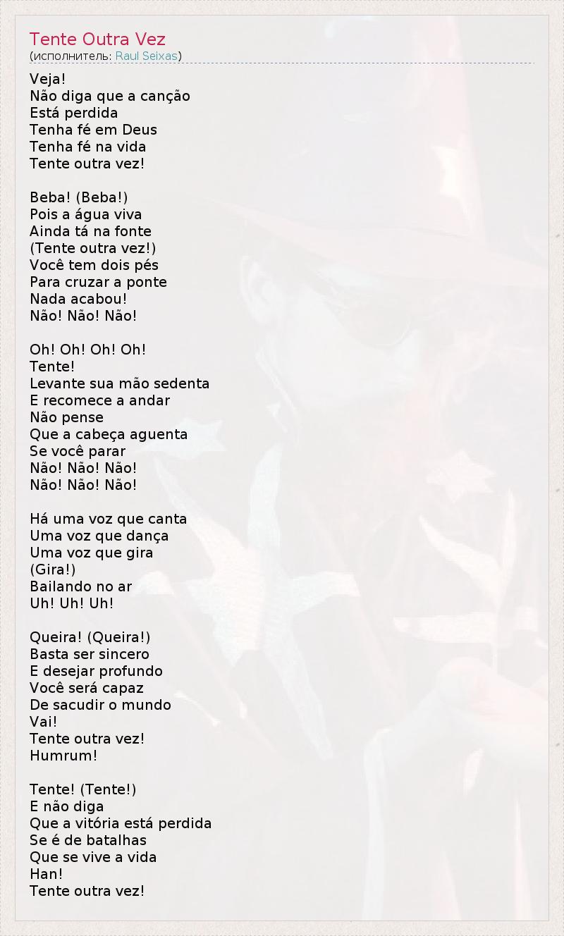 А как ты думаешь, о чем песня "Tente Outra Vez" ?