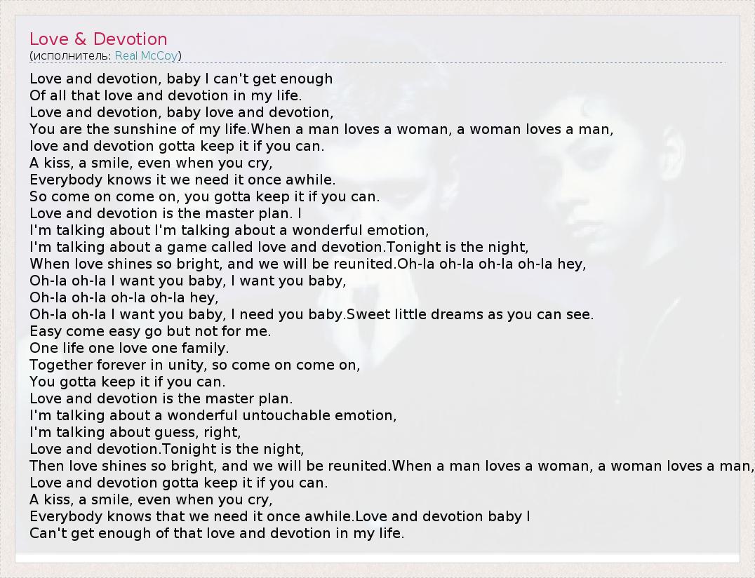 А как ты думаешь, о чем песня "Love & Devotion" ?