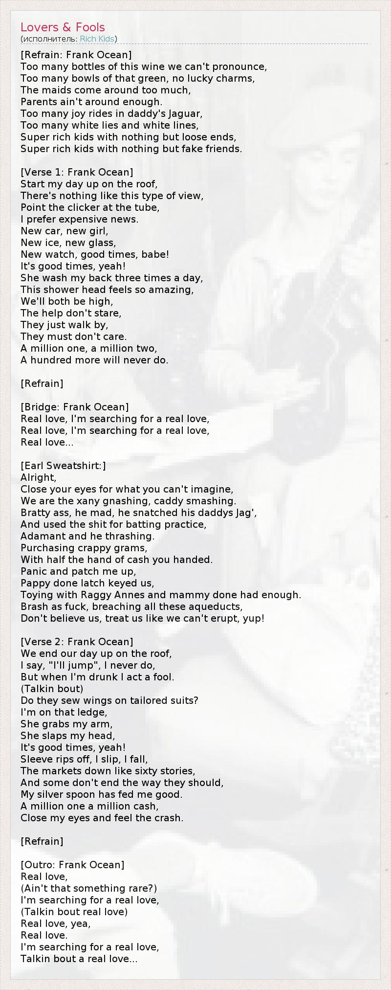 А как ты думаешь, о чем песня "Lovers & Fools" ?