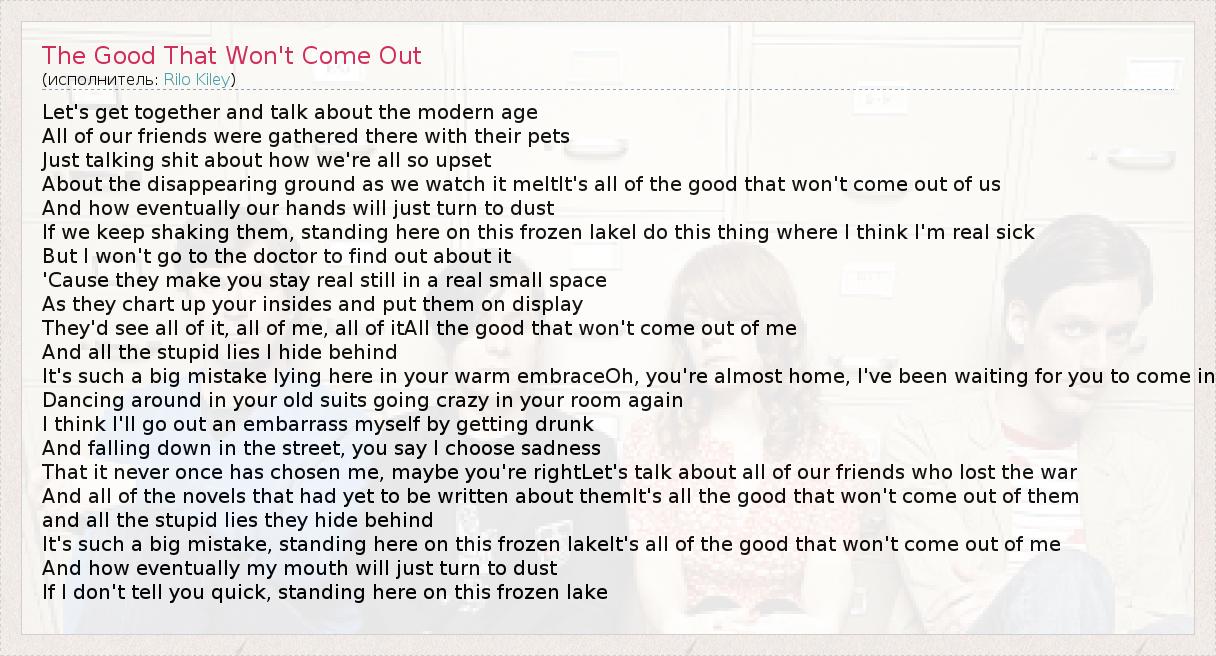 ГлавнаяИсполнителиRilo KileyThe Good That Won't Come Out