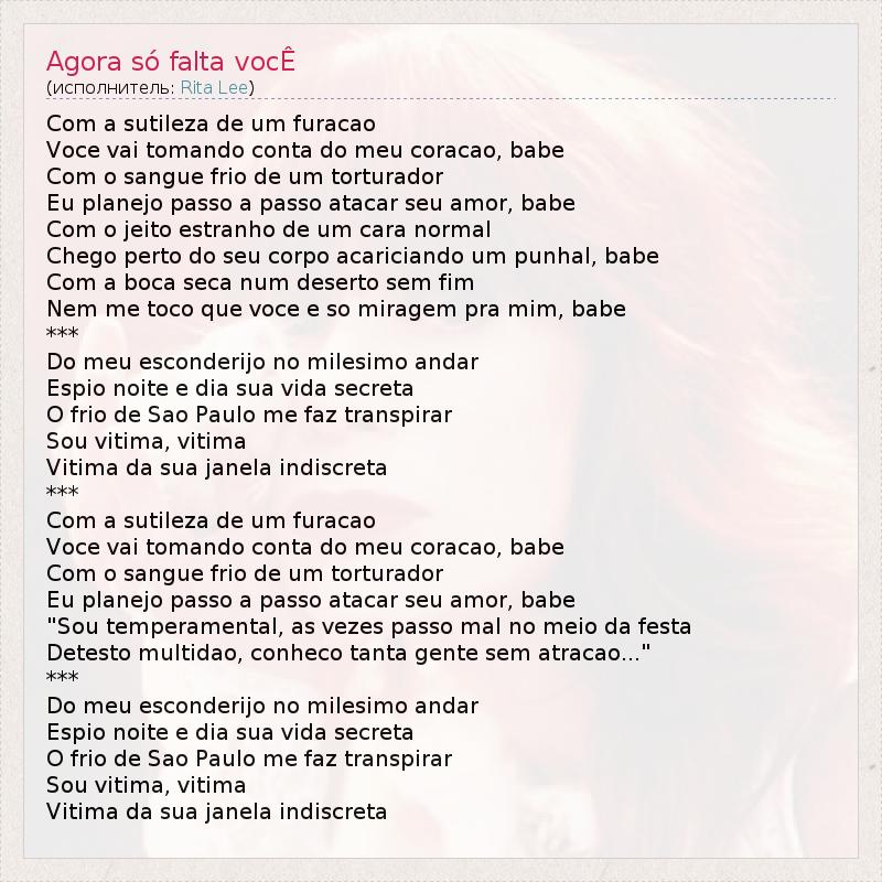 ГлавнаяИсполнителиRita LeeAgora só falta vocÊ