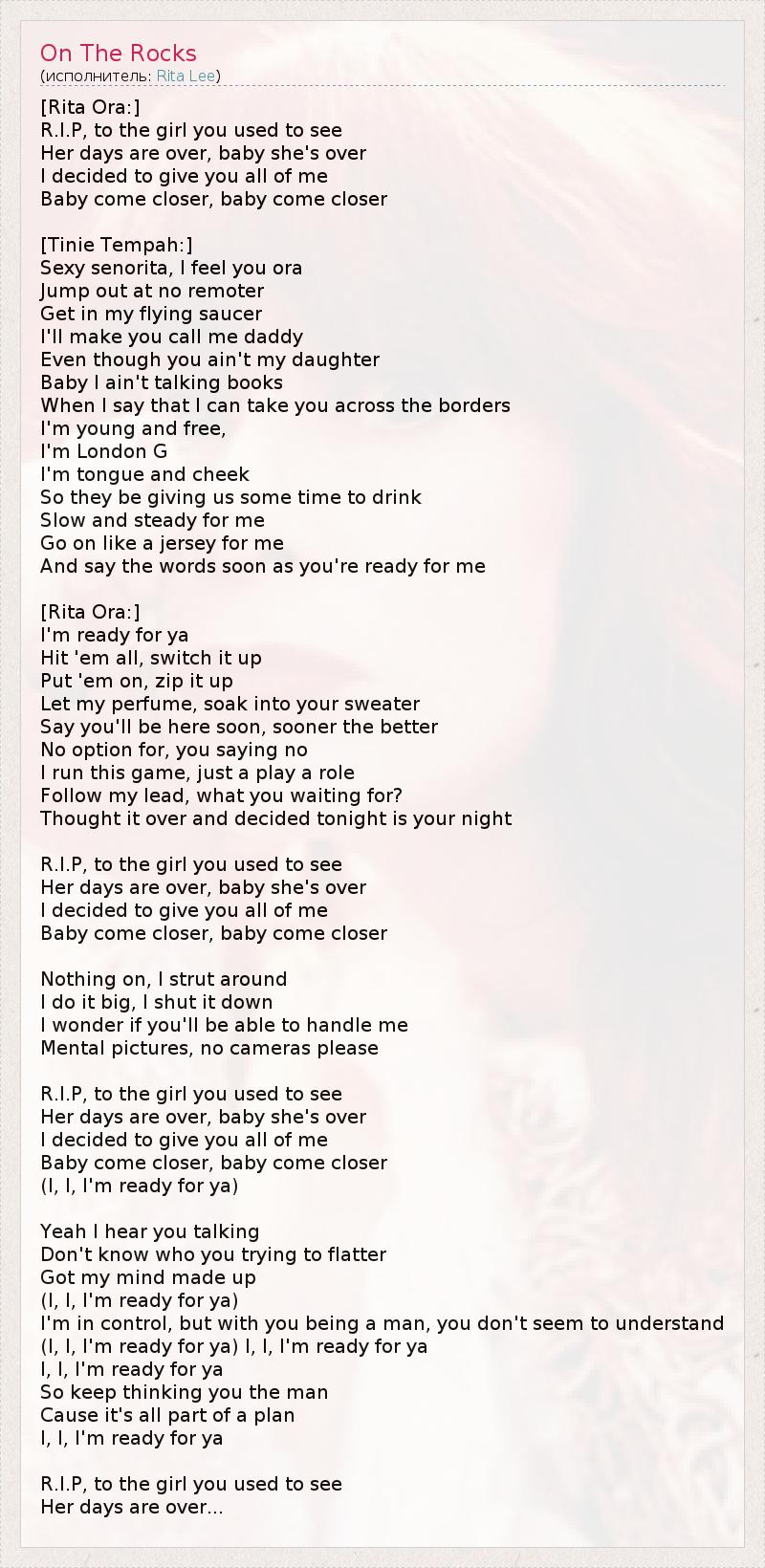 А как ты думаешь, о чем песня "On The Rocks" ?