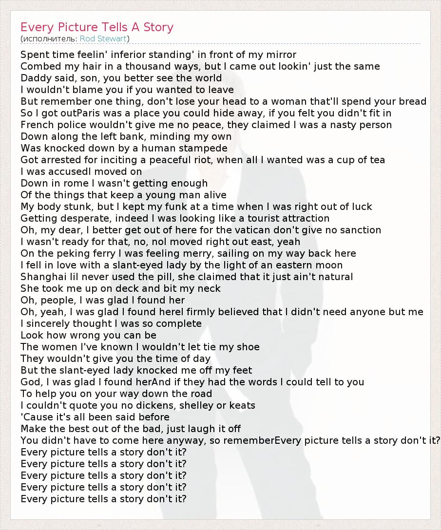 А как ты думаешь, о чем песня "Every Picture Tells A Story" ?