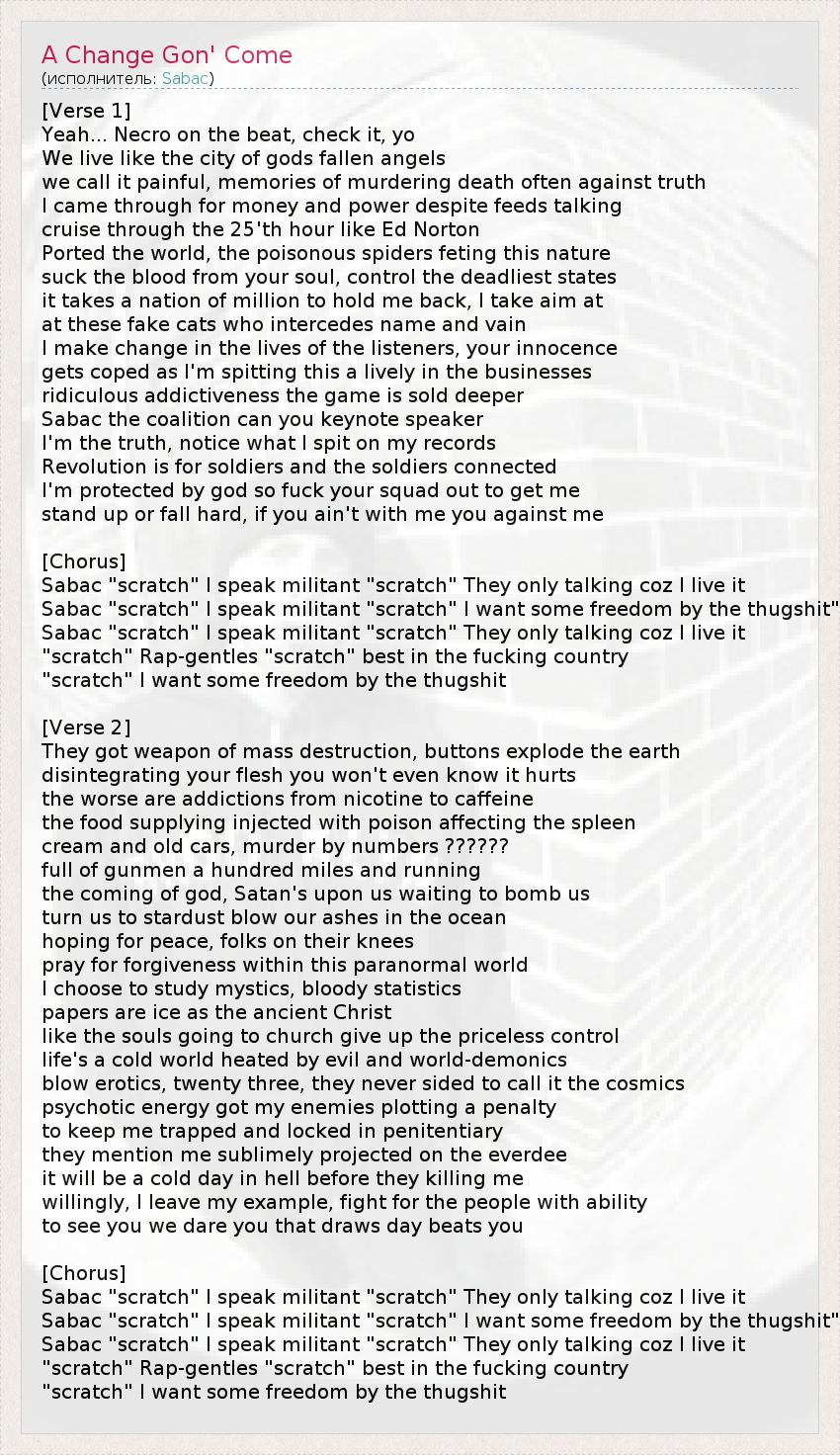 А как ты думаешь, о чем песня "A Change Gon' Come" ?