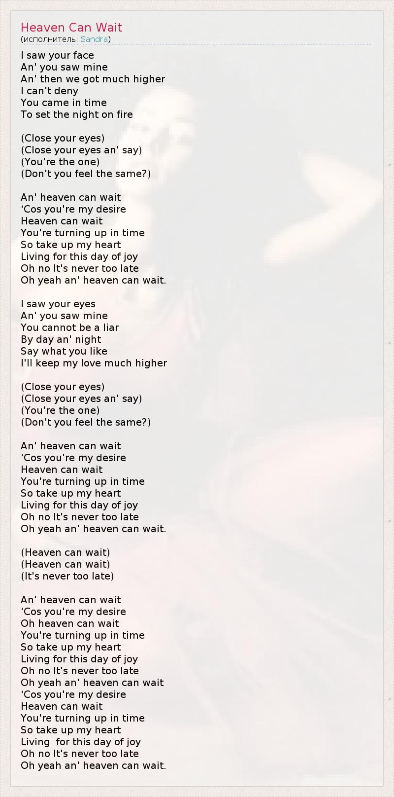 А как ты думаешь, о чем песня "Heaven Can Wait" ?