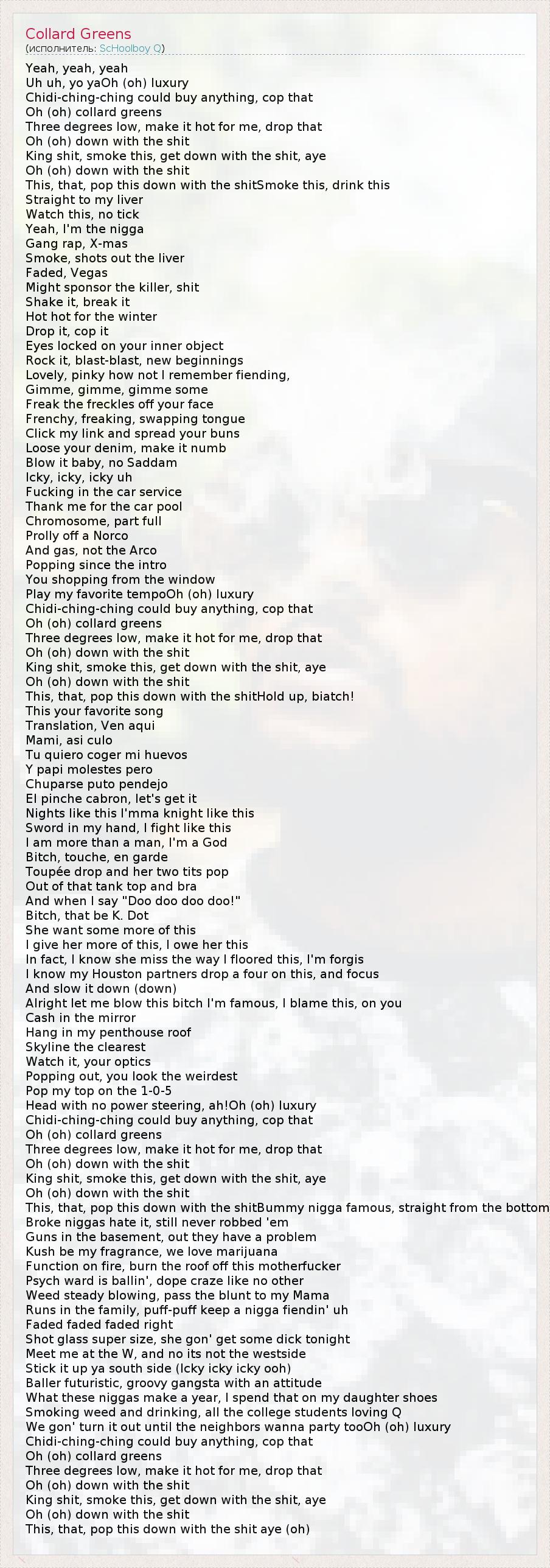 А как ты думаешь, о чем песня "Collard Greens" ?