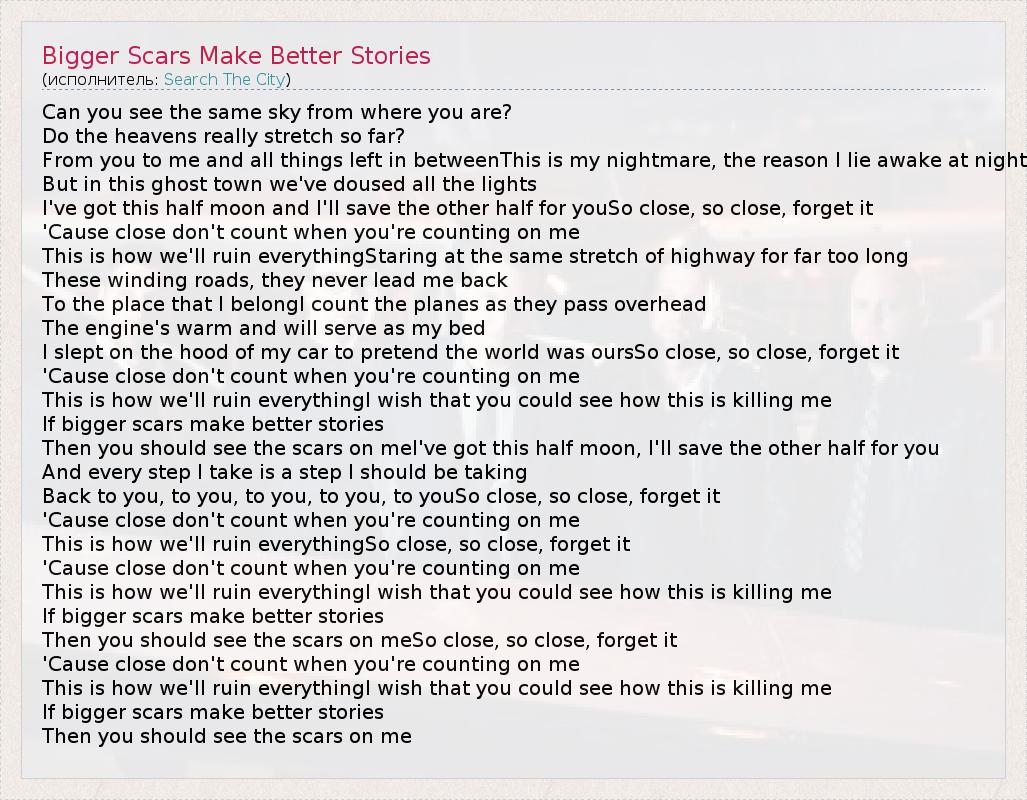 ГлавнаяИсполнителиSearch The CityBigger Scars Make Better Stories