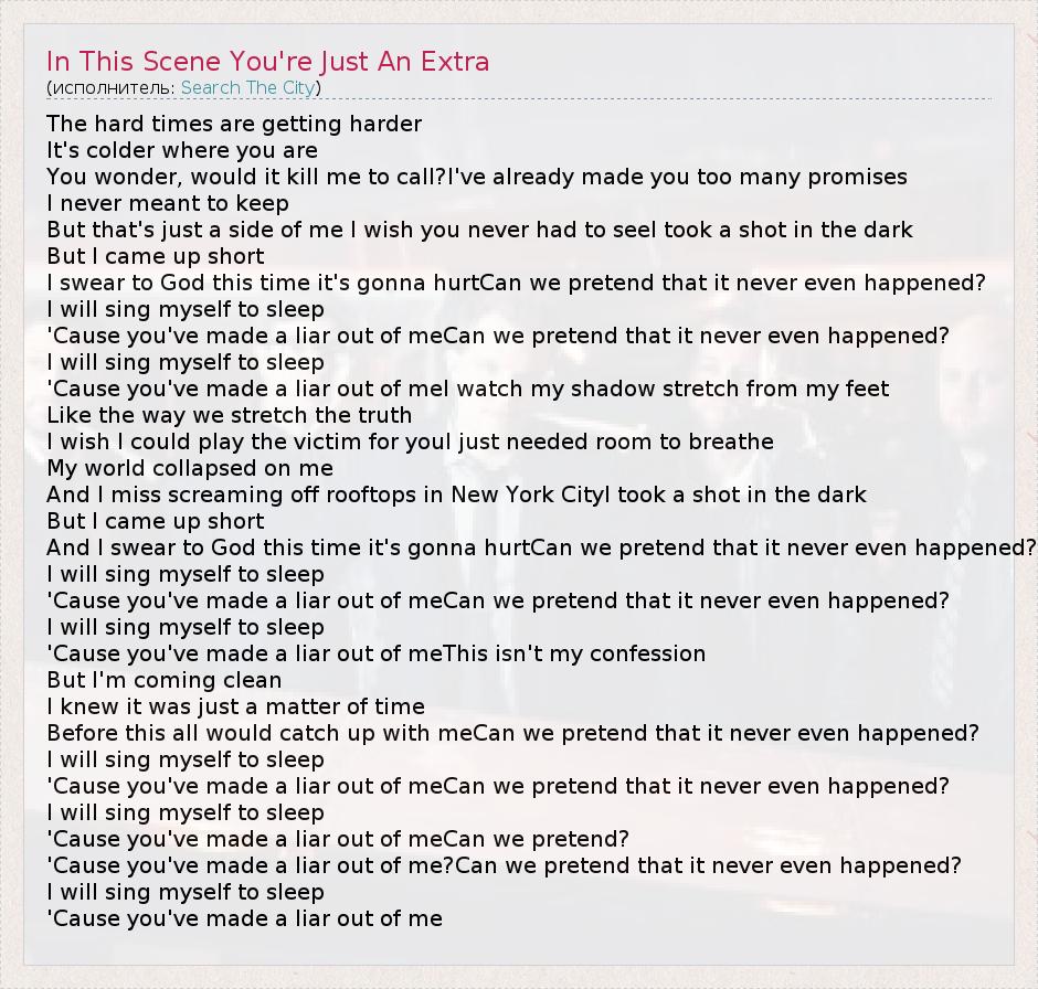 ГлавнаяИсполнителиSearch The CityIn This Scene You're Just An Extra