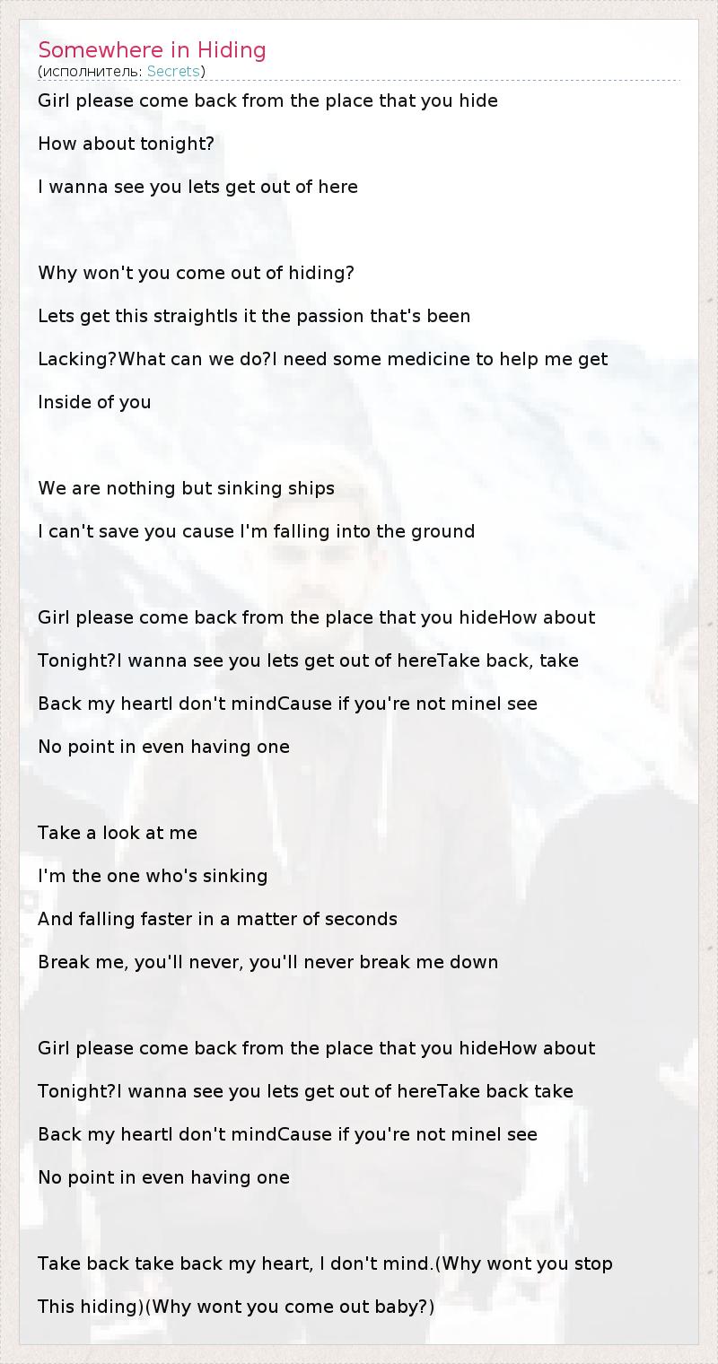 А как ты думаешь, о чем песня "Somewhere in Hiding" ?