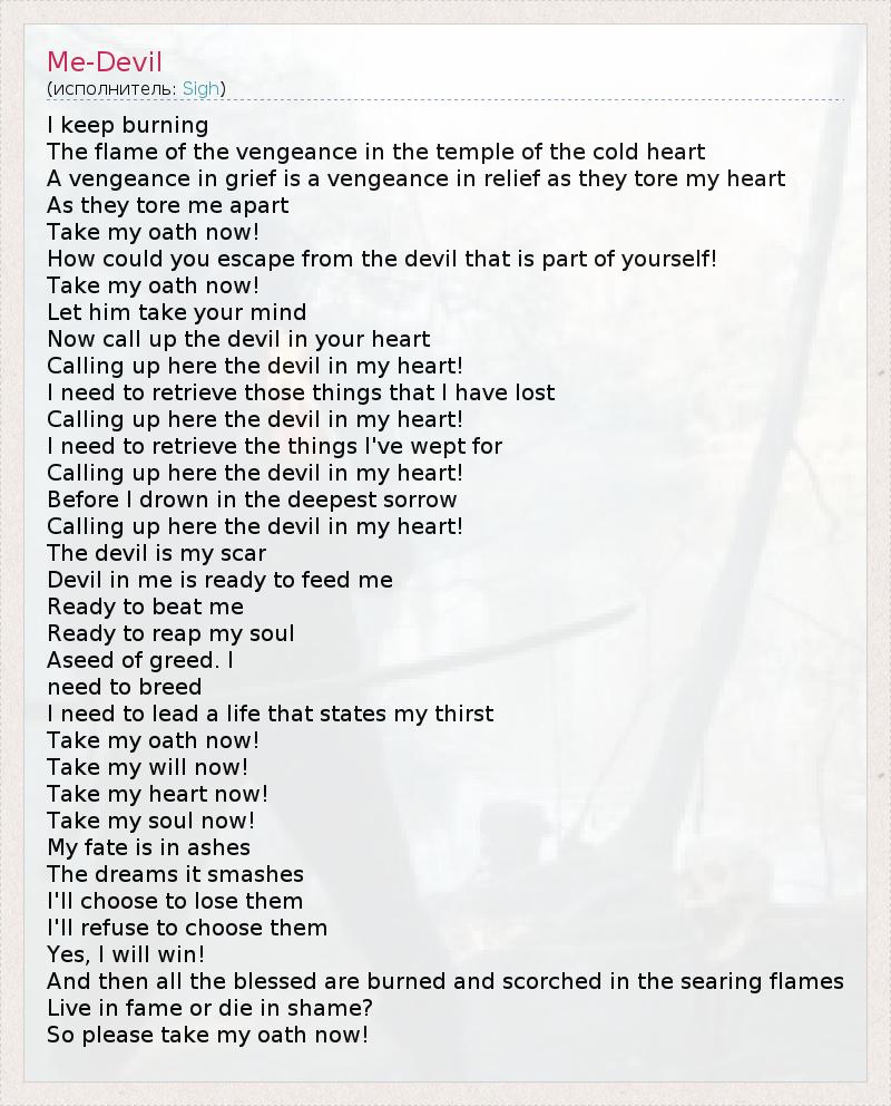 А как ты думаешь, о чем песня "Me-Devil" ?