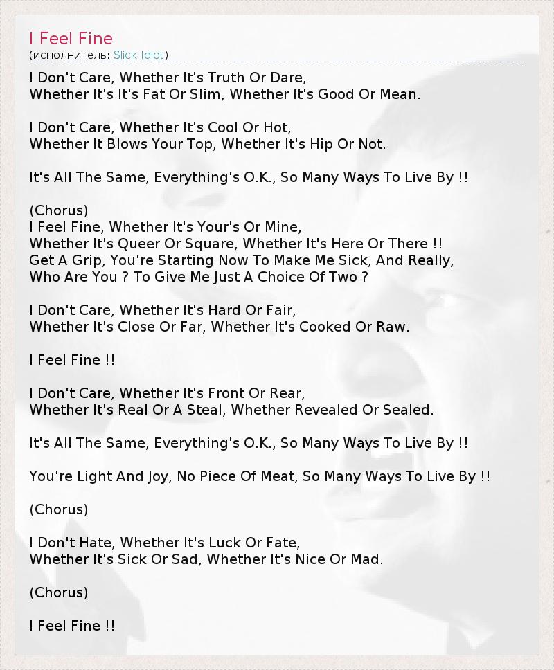 А как ты думаешь, о чем песня "I Feel Fine" ?