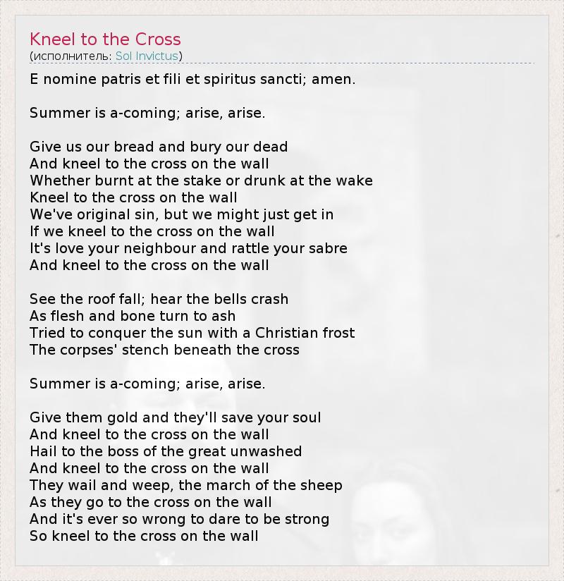 А как ты думаешь, о чем песня "Kneel to the Cross" ?