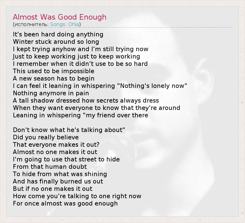 Almost Was Good Enough