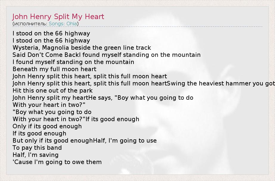 ГлавнаяИсполнителиSongs: OhiaJohn Henry Split My Heart