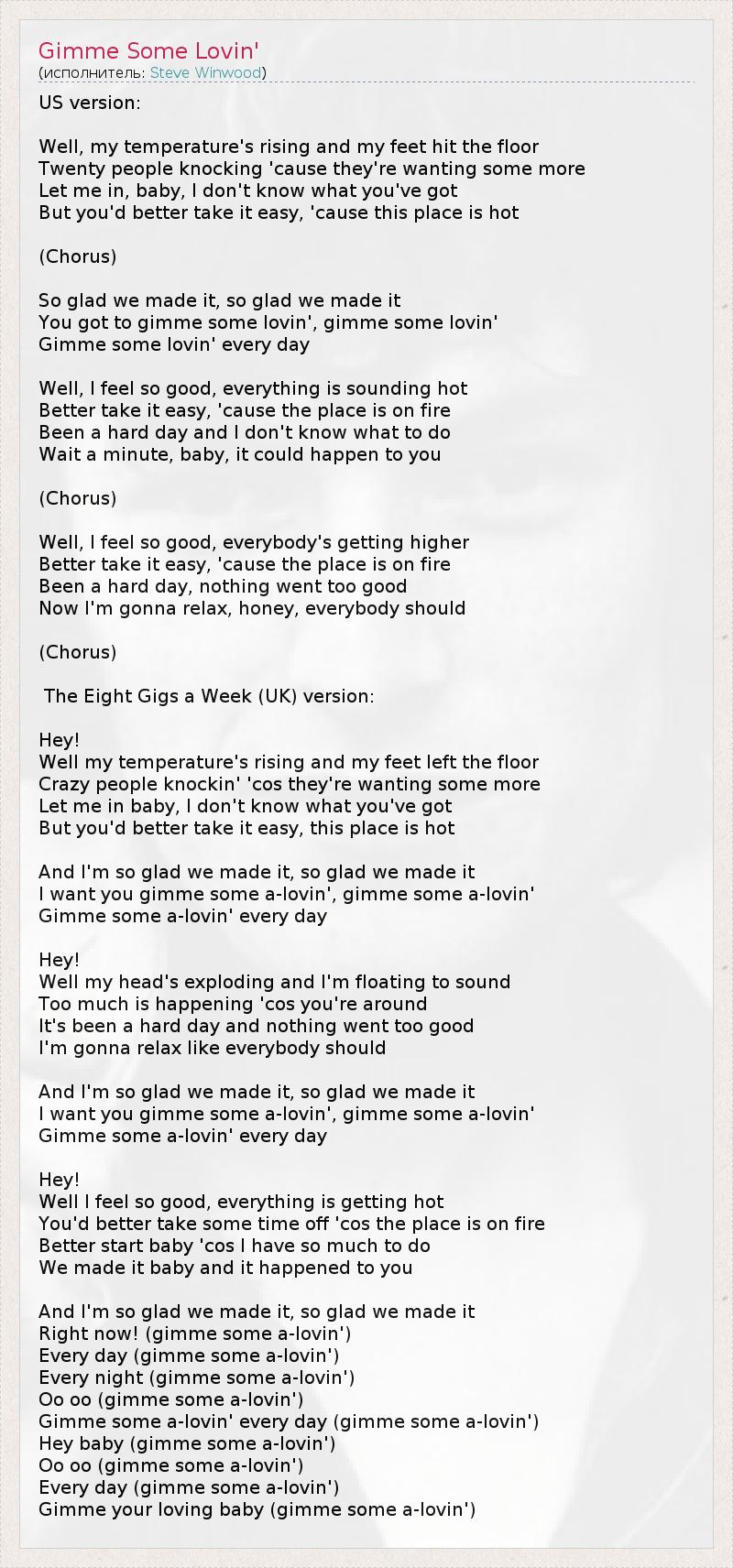 А как ты думаешь, о чем песня "Gimme Some Lovin'" ?