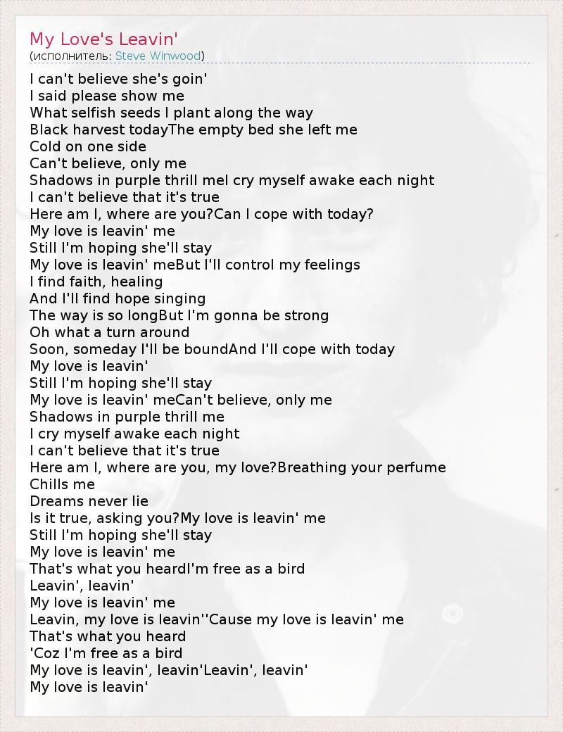 А как ты думаешь, о чем песня "My Love's Leavin'" ?