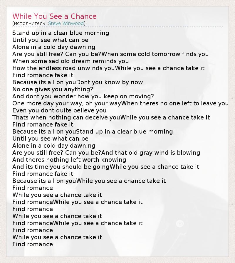 А как ты думаешь, о чем песня "While You See a Chance" ?