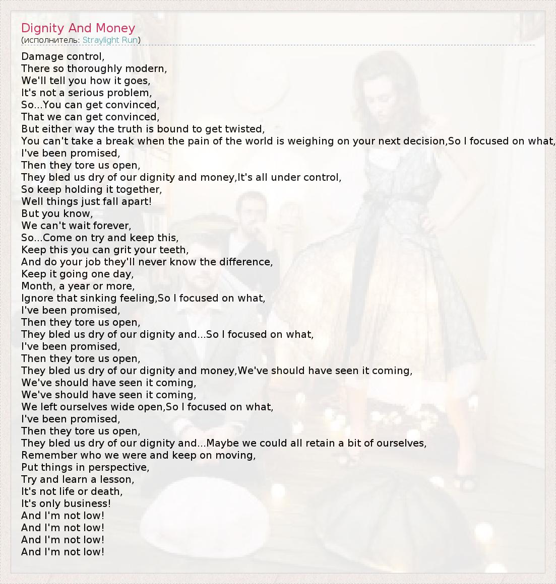 А как ты думаешь, о чем песня "Dignity And Money" ?