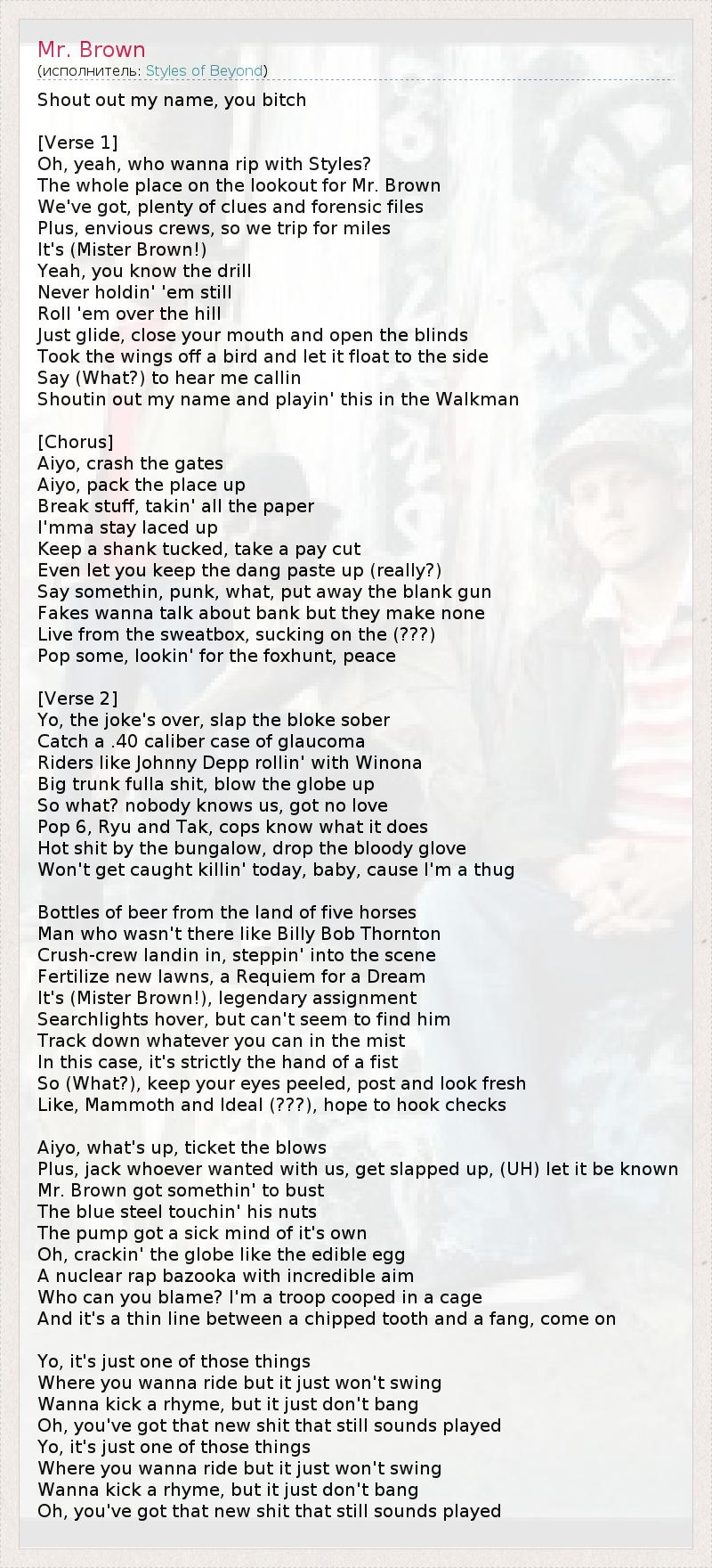 А как ты думаешь, о чем песня "Mr. Brown" ?
