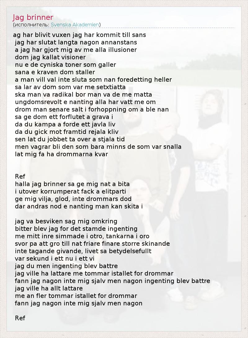 А как ты думаешь, о чем песня "Jag brinner" ?
