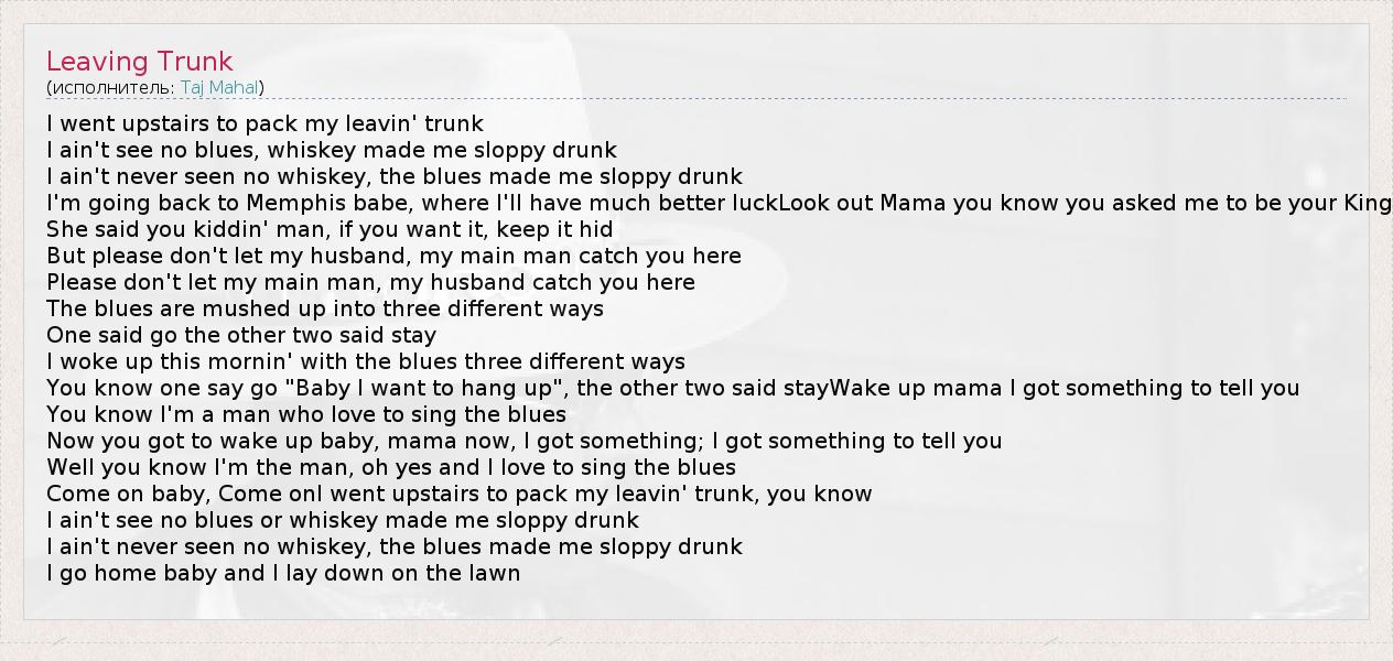 А как ты думаешь, о чем песня "Leaving Trunk" ?