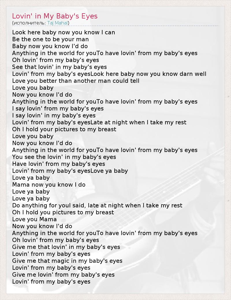 ГлавнаяИсполнителиTaj MahalLovin' in My Baby's Eyes