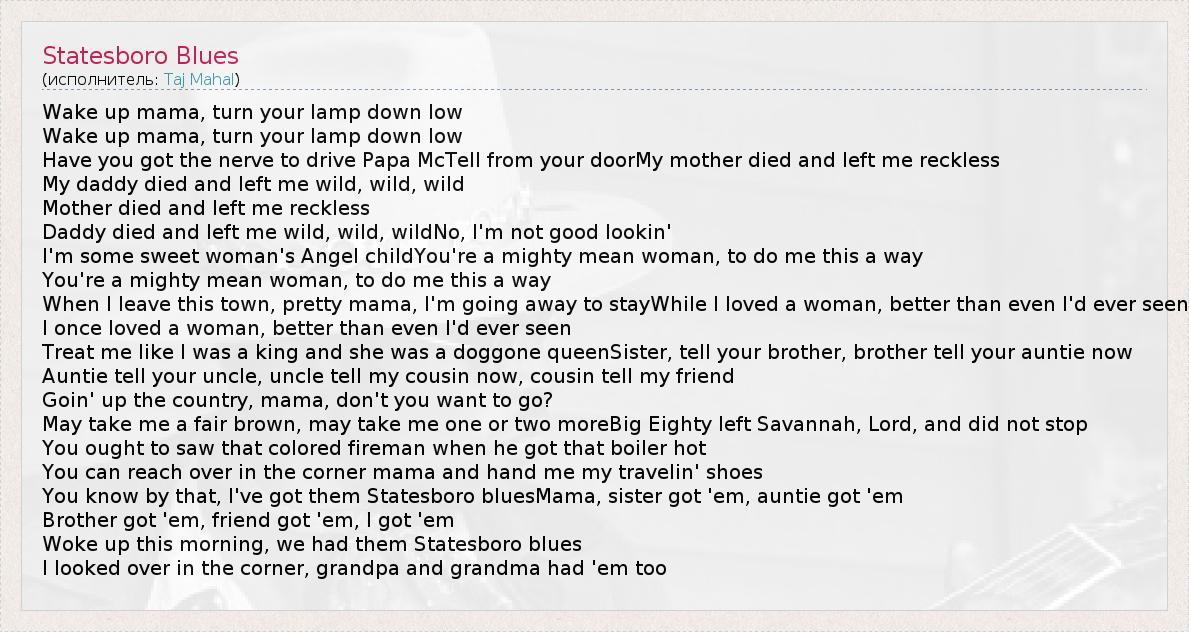 А как ты думаешь, о чем песня "Statesboro Blues" ?