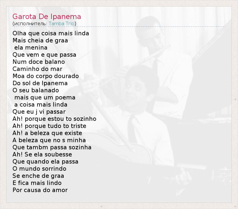 А как ты думаешь, о чем песня "Garota De Ipanema" ?