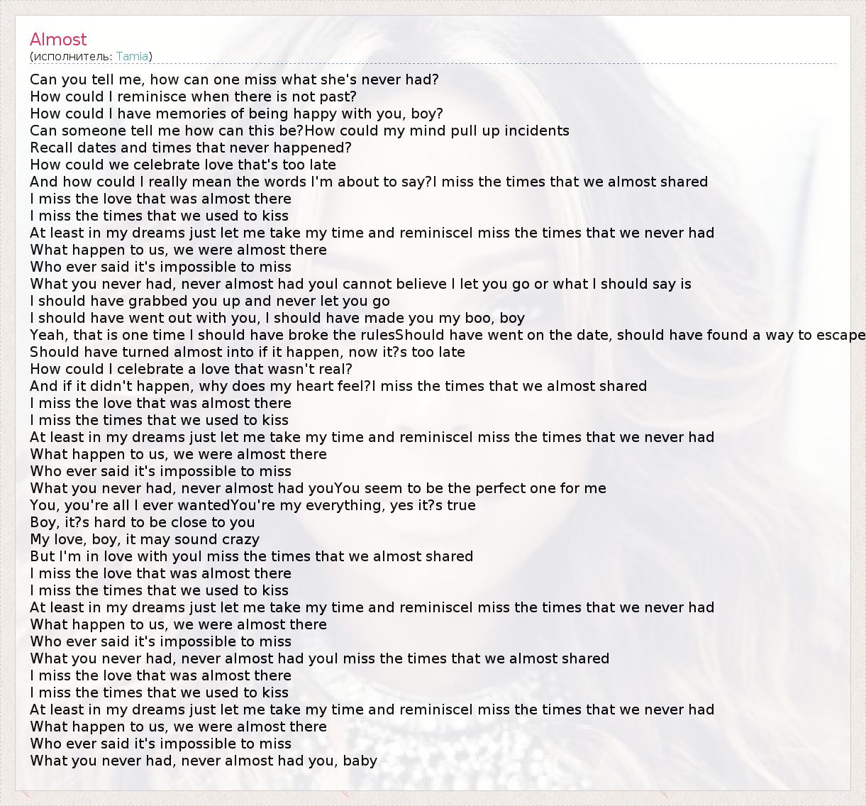 And if it didn't happen, why does my heart feel?I miss the times that we almost shared