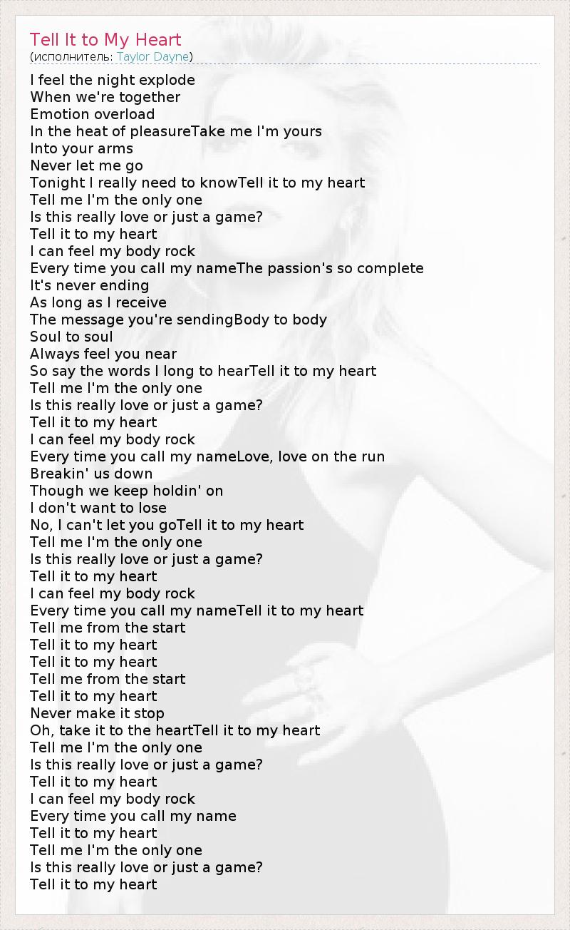 А как ты думаешь, о чем песня "Tell It to My Heart" ?