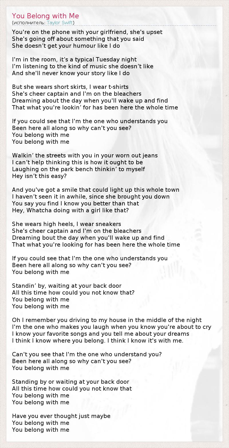 А как ты думаешь, о чем песня "You Belong with Me" ?
