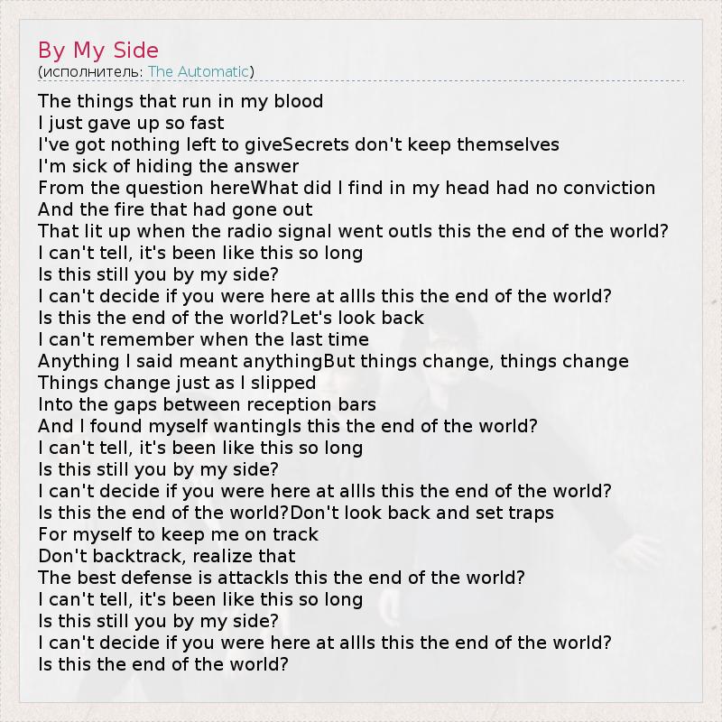 А как ты думаешь, о чем песня "By My Side" ?