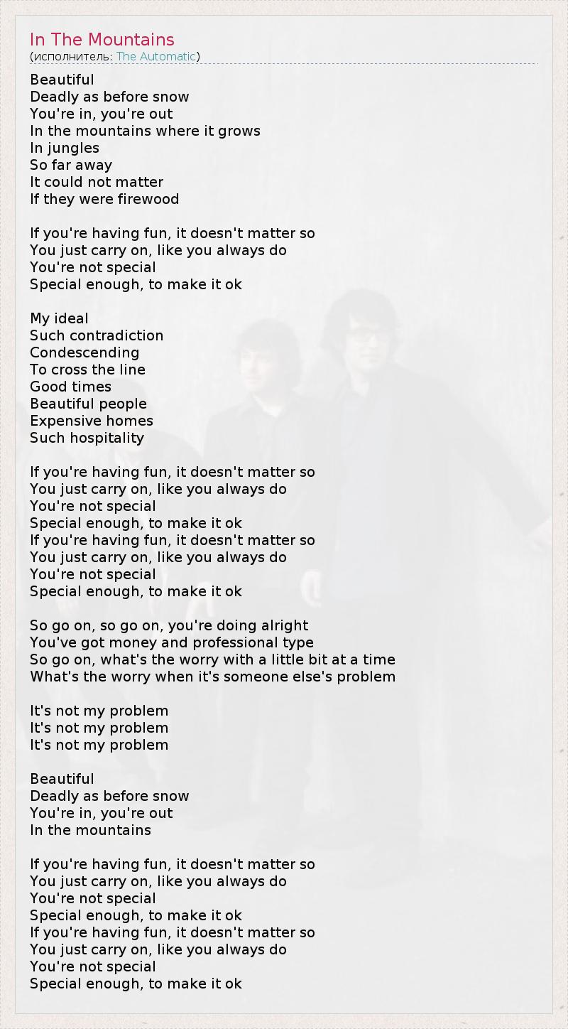 А как ты думаешь, о чем песня "In The Mountains" ?
